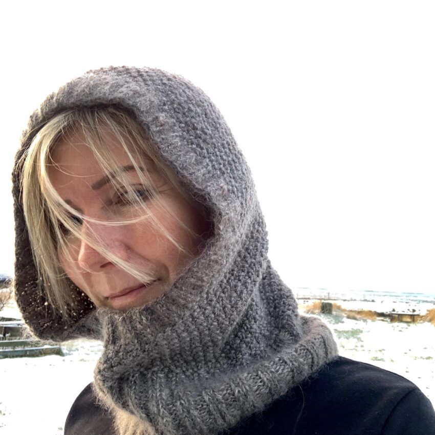 Mjúk og hlý, lambhúshetta fyrir fullorðna.